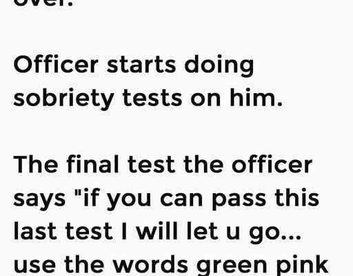 The officer raises an eyebrow but says nothing, calmly moving on to the next test. This time, the man is asked to stand on one foot. He lifts his foot, wobbles dramatically, windmills his arms, and then drops it back down. Without missing a beat, he announces that he can’t do the test properly because he’s barefoot and his balance “depends on his shoes